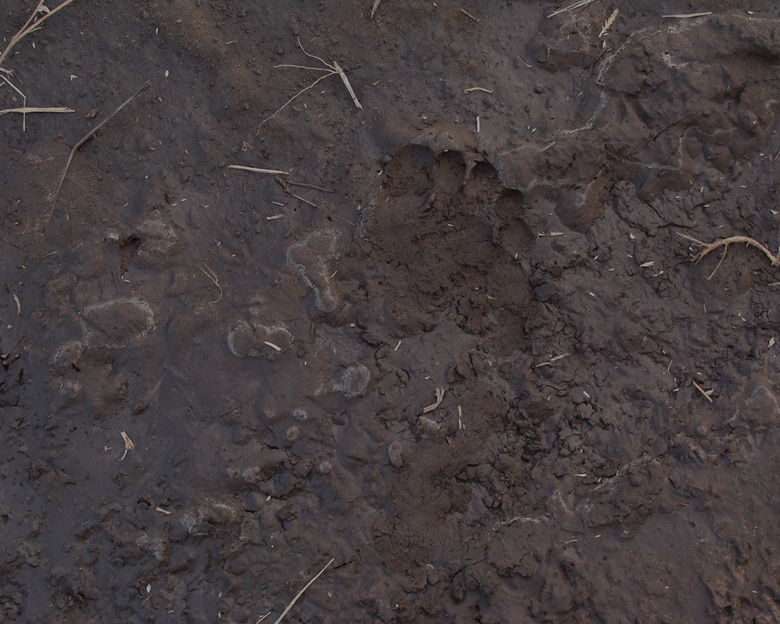 footprints, traces, tracks.
